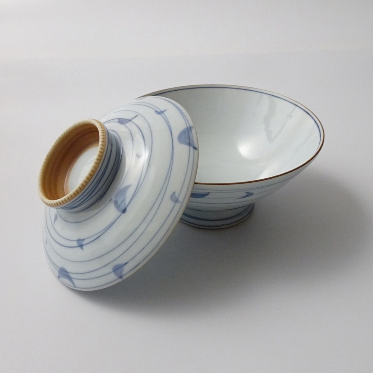 ◇少し大きめのお茶漬碗です。染付で木の葉渦が描いてあります。
